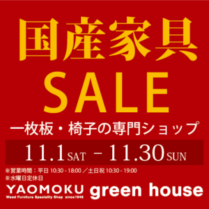 YAOMOKU green house 国産家具SALE 2025年11/1(土)-11/30(日)