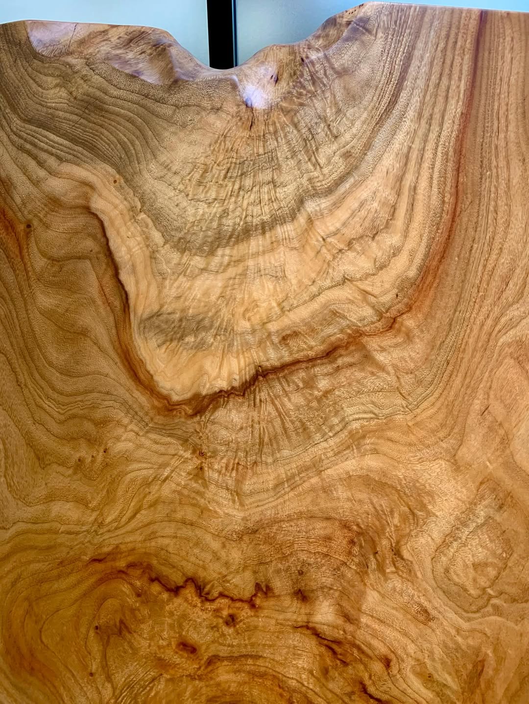 クス(楠)の一枚板と言えば、やはり柔らかく優しげな印象で癒しを与えてくれる雰囲気が特徴です。一般に黄褐色~淡い褐色で、木目は大きく明瞭、テーブル外側の耳と呼ばれる部分も緩やかで自然な流れを描いているものが多く、既製品のテーブルとは違った一枚板らしさを与えてくれます。また幅の大きな一枚板も多いことから企業の会議用テーブルなどの大人数で使用するテーブルとしてもおすすめの樹種です。