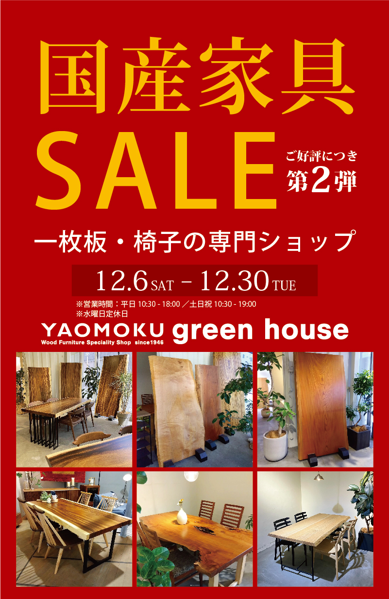 YAOMOKU green house 国産家具SALE 第2弾 2025年12/6(土)-12/30(火)